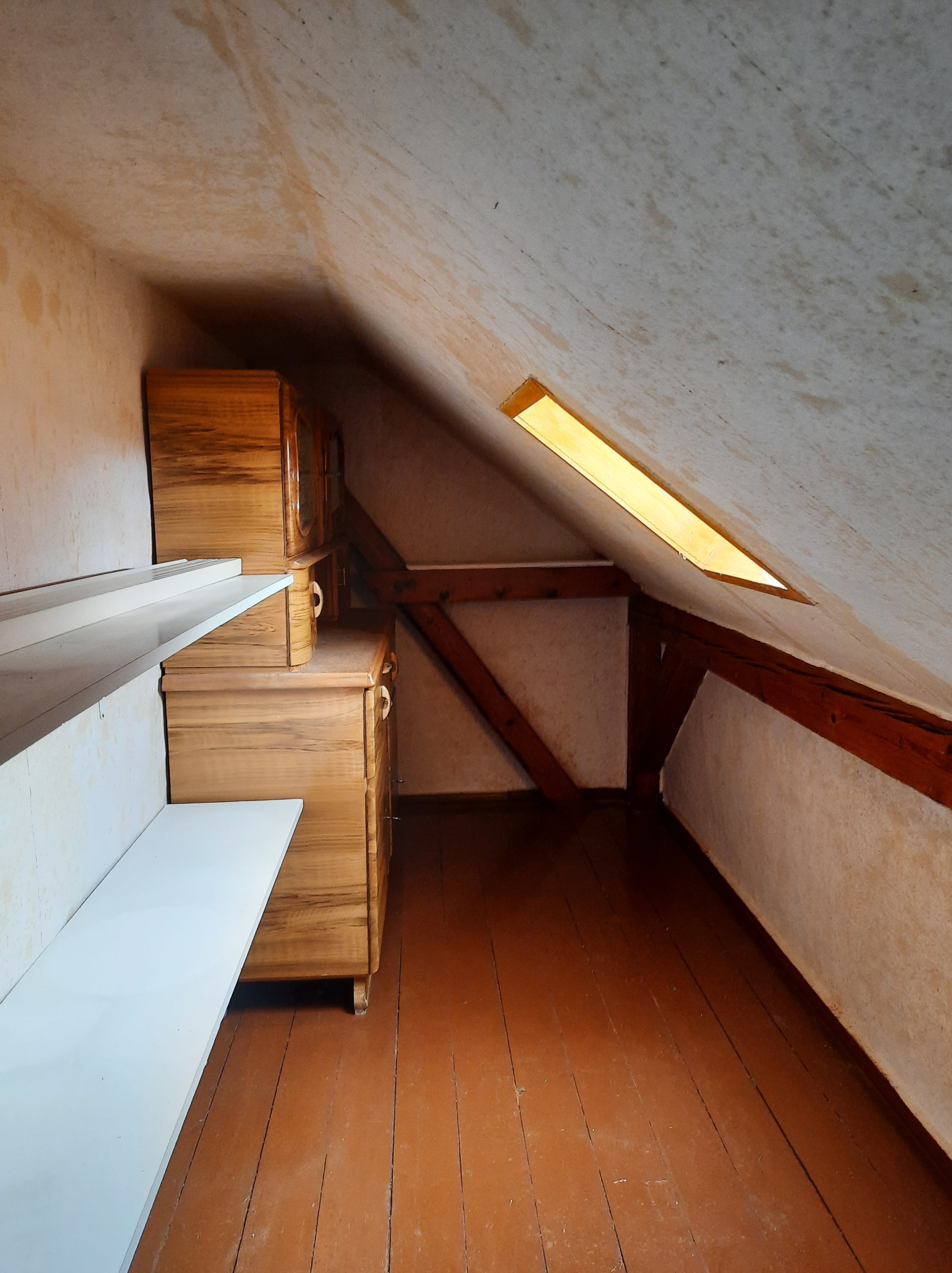 Im Erdgeschoss befinden sich Küche, Flur, Badezimmer und Wohnzimmer bei einer Raumhöhe von 2,30m. Das Obergeschoss besteht aus 4 Zimmern mit einer Raumhöhe von 2,10m.